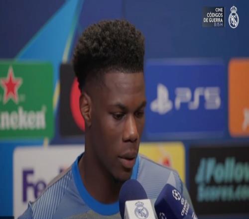 体育播报4月8日宣 欧冠1/4决赛首回合,皇马主场1比2不敌拜仁。赛后,琼阿梅尼接受了俱乐部官方媒体的采访。