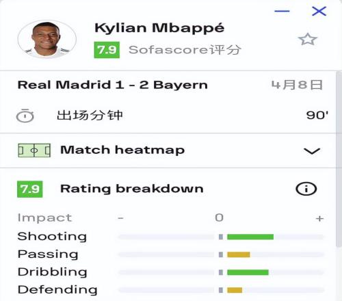 数据说话:诺伊尔封神,姆巴佩独木难支
